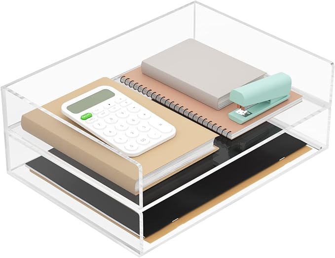 - PREMIUM ACRYLIC LETTER TRAY: Made from sturdy thick acrylic, water-proof and odor-resistant, these 2 pack acrylic letter trays ensure heavy-duty use, much more durable than other cheap plastic ones. Hand polished round edges ensure safe. Crystal clear acrylic provides high transparency.