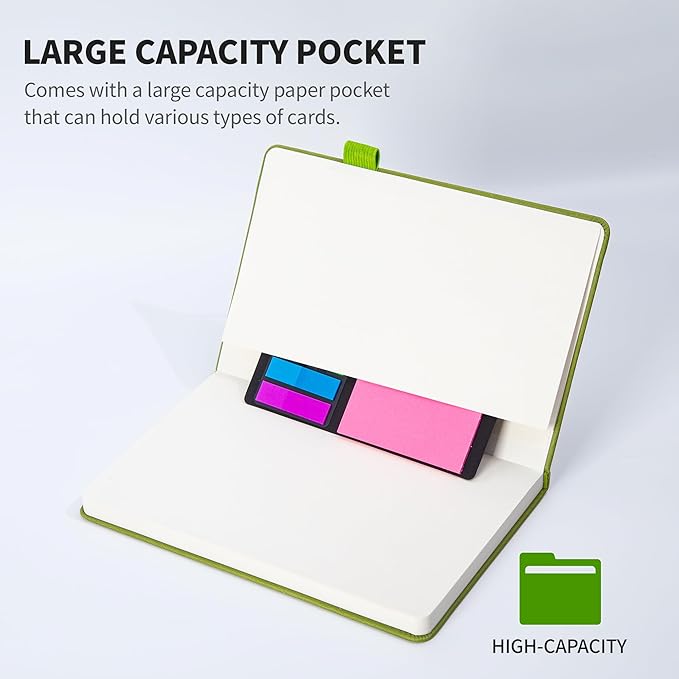 - 🌈【Multifunctional Accessories】⭐This classic 5.6" x 8" vegan leather journal features a durable and water-resistant cover, 160 college ruled lined pages, inner expandable pocket, pen holder, ribbon bookmark & elastic closure band