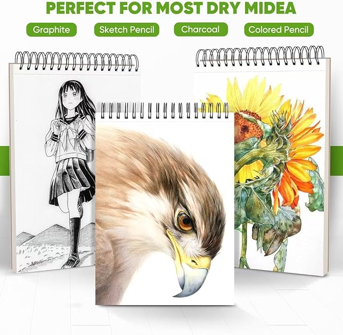 - 【Suitable for all types of dry media】Our these premium, acid-free, natural white drawing sketching paper are suitable for all types of dry media, such as pencils, pens, crayons, charcoal, pastels and sketching sticks. NOT applicable to Alcohol markers and Watercolor pens.