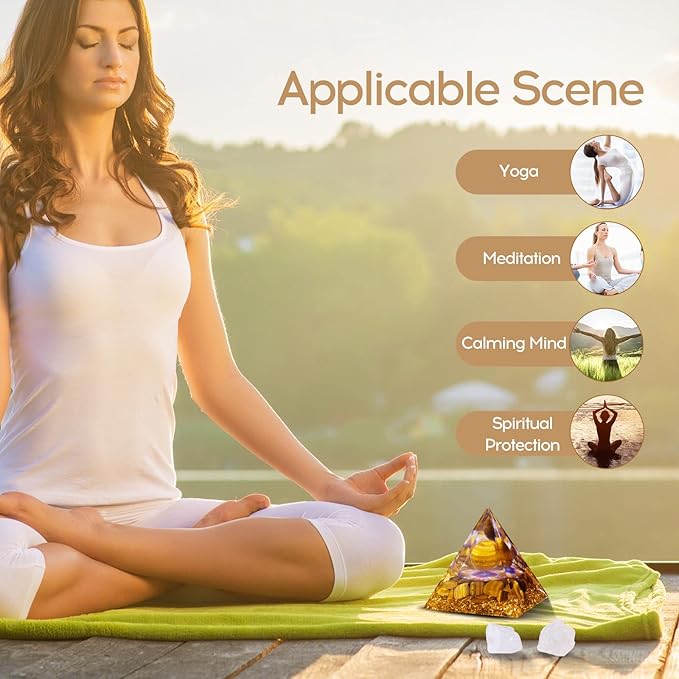 - 🌱【Healing Crystal Pyramid】: Orgone Pyramid is made of natural tiger eye stone ball, tiger's eye stones , gold leaf, natural resin. Tiger's Eye as "Stone of Merchant". Not only because it brings fortune and good luck, but its energy can also help you reach your full potential and stimulate creativity, release positive energy, reduce stress, may make you more likely to complete the task successfully.