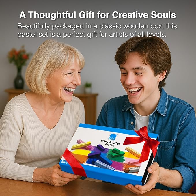 - 80 VIVID COLORS FOR ENDLESS CREATIVITY: A wide range of vibrant soft pastel chalks—perfect for crafts, sketching, and portraits. Easy to use for layering, blending, hatching, and more. Versatile palette for both practice and creating stunning masterpieces in any subject.