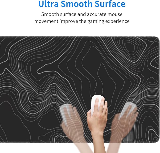 Extra Large Mouse Pad 31.5 x 11.8 Inch - Topographic Map Lines Contour Design - Non-Slip Rubber Base, Easy Gliding Surface, Desk Mat for Office, Home, Gaming, Work - XL Mousemat