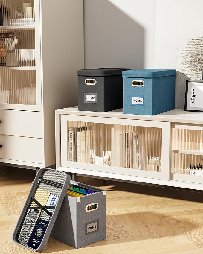 - 【Extra Mesh Bag on Lid】Grey letter size file organizer box has an extra mesh pocket on lid which can store little things such as pens, invoices, papers, scissors,etc. With more storage space design, more efficient storage of documents and items.
