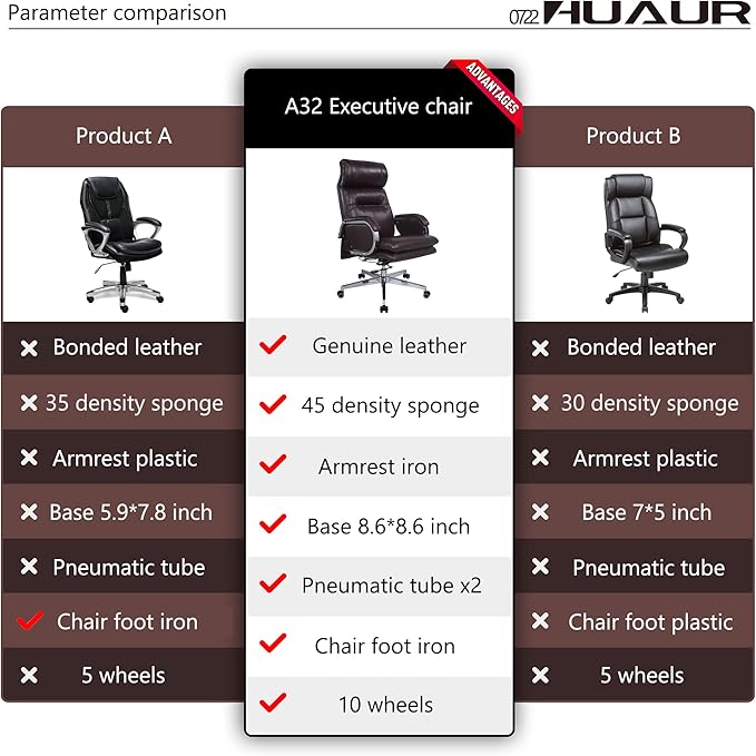 - GENUINE LEATHER FABRIC: The contact surface is 100% cowhide, with clear and natural texture and a special odor. The thickness of genuine leather is 3.5 millimeters. The biggest advantages of natural leather are wear resistance and breathability. The fiber structure of genuine leather can quickly sweat and maintain dryness, If the lifespan of synthetic leather is 36 months, then the lifespan of genuine leather is at least 2-3 times that of synthetic leather, or even longer.