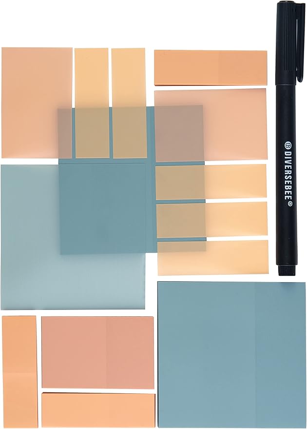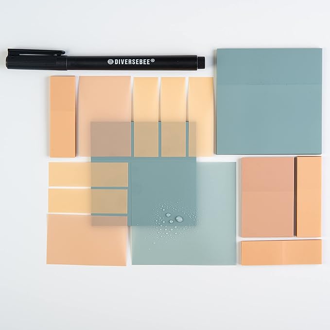 DiverseBee Transparent Sticky Notes (Includes Quick Dry Pen), Cute Clear Sticky Tabs, Translucent Page Flags Book Markers Stickers, Planner Accessories Bible Journaling Study Office Supplies (Candy)