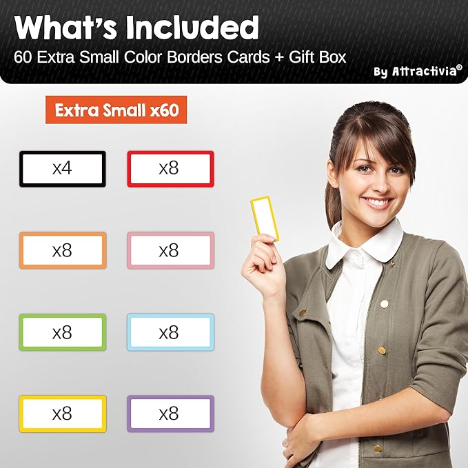 Dry Erase Magnetic Labels 2.8 x 1.2 in, Color Borders, Dry Erase Magnets, 60-Pack, White Erasable Write-On All-Purpose Labels, for Office, Education, Home, Whiteboard, Magnetic Name Tags
