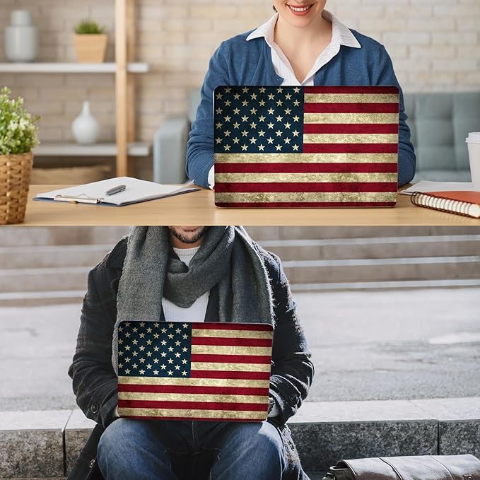 Compatible with MacBook Pro 13 Inch Case M2/M1 2025 2022-2017 A2338 A2289 A2251 A2159 A1989 A1706 A1708 Plastic Hard Shell Case&Keyboard Skin&Mac OS Keyboard Sticker (American Flag)