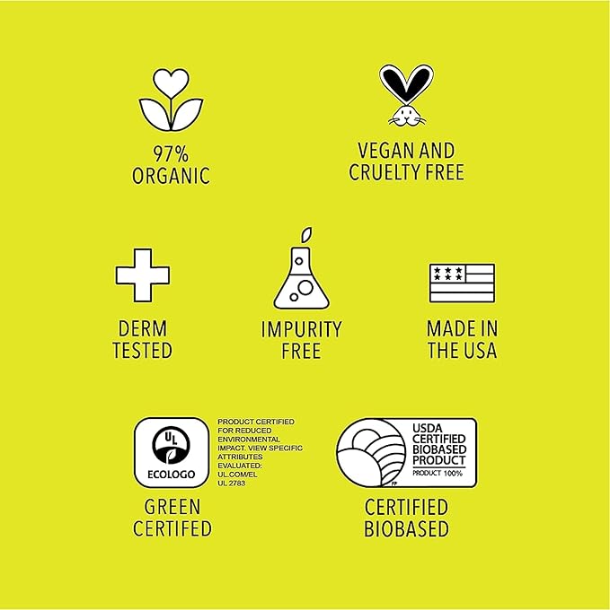 - 97% Organic Ingredients, 70% v/v USDA Organic Sugar-Cane Ethyl Alcohol, Green-Certified, USDA Certified Biobased Product 100%