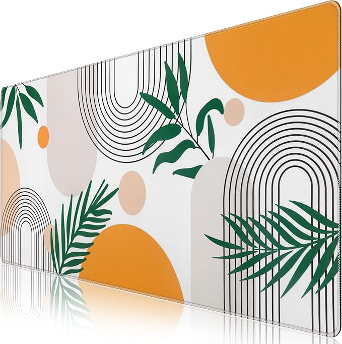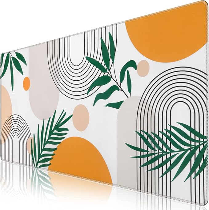 iCasso Extended Gaming Mouse Pad (35.4x15.7 in), Large 3mm Non-Slip Rubber Base Mousepad with Stitched Edges, Waterproof Keyboard Mouse Mat Desk Pad for Work, Game, Office, Home-Elm Leaf