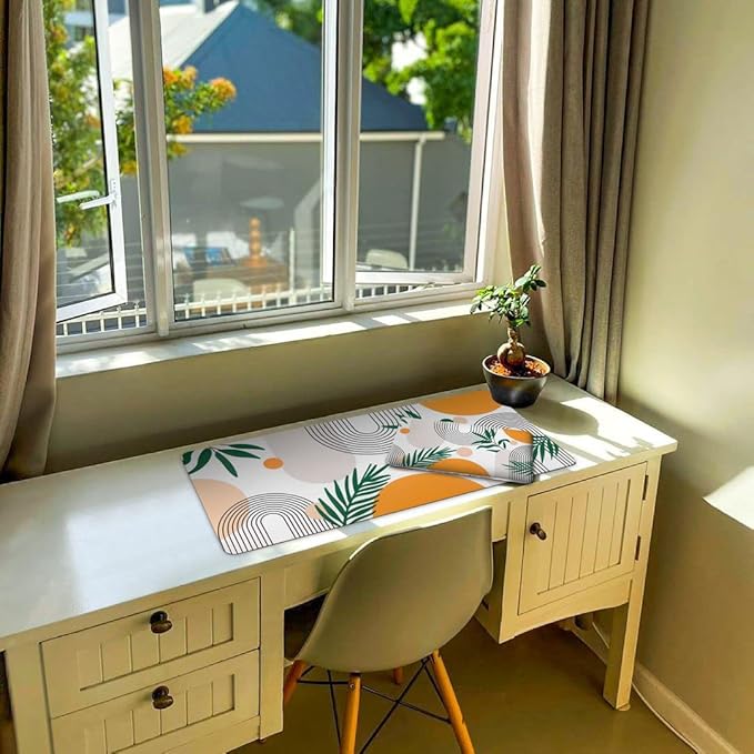 - 【 Extended Large Mouse Pad Size 】 Large Desk mat's measure: 35.4 x 15.7 inches. The desk pad is large enough to have a mouse, gaming keyboard, and other desk items while maintaining protecting your desk all the time. Just immerse into your work or games without worrying about the annoying mouse pad movement.