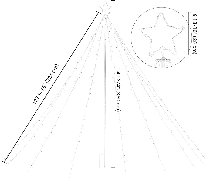 - [9 String Lights for Mood Setting]: 12 ft LED Cone Tree Light with Star Finial features 9 strands of lights and star-shaped topper to form a Christmas tree shape for festival celebration; Plug-in for power source, offers brighter lighting effect, making you the most impressive decoration in the neighborhood