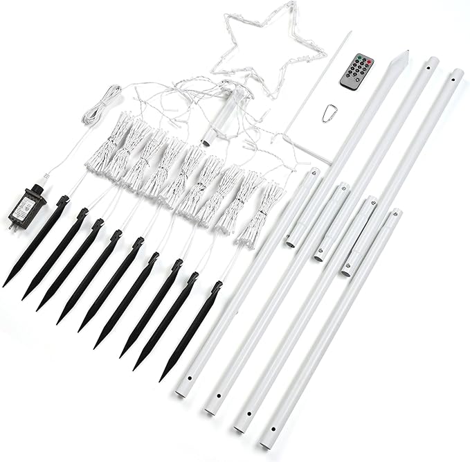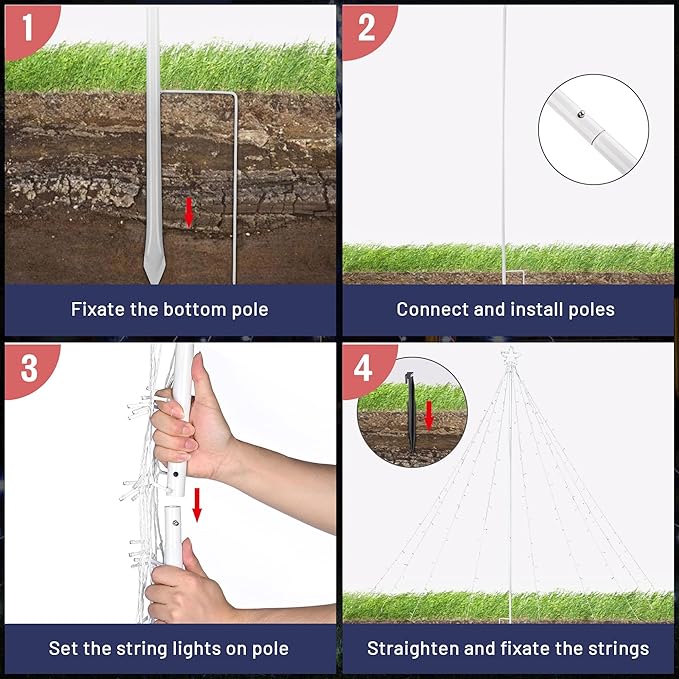 - [Easy to Install & Store]: Push-button connectors on the tubes allow you to finish installation in minutes without tool; Easily assemble and fixate the pole, set the string lights on pole and straighten and fixate the strings; Detachable design for space-saving storage