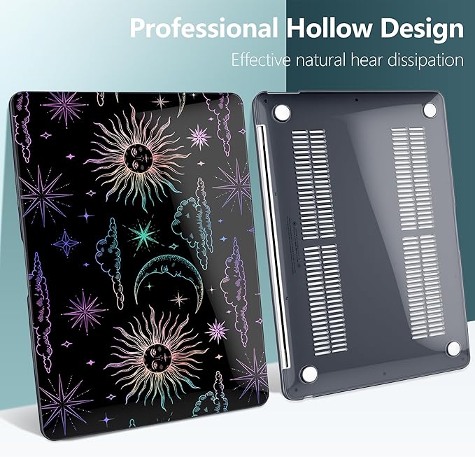 DONGKE Compatible with MacBook Air 13 inch Case 2021 2020 2019 2018 Release A2337 M1 A2179 A1932 with Retina Display & Touch ID, Plastic Hard Shell & Keyboard Cover - Sun & Moon