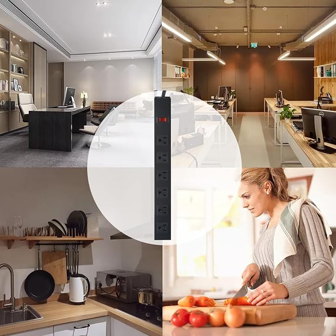 - Wide Spaced Power Strip: 6 wide spaced outlets, the center-to-center distance between AC outlets is about 1.57inch(4cm), which is very suitable for large plugs. Connect with 3 ft 14AWG power cord. This long power strip Rating: 15A, 125V, 60Hz, 1875W.