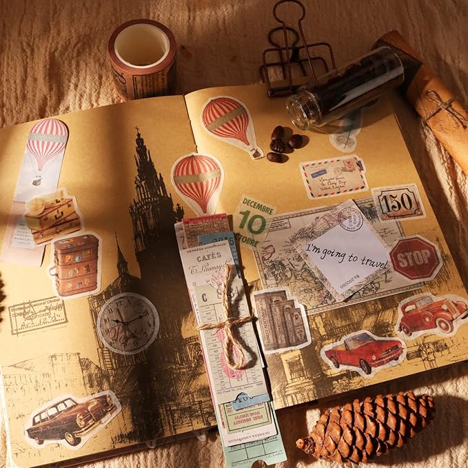 - 【DIY Your Stuff】The retro stickers are perfect to embellish art journal, collages, mixed media art, scrapbooking & stamping supplies, decorating planners, diary and bullet journals, hand account, travel book, account book, handmade card, paper crafting, gift wrapping, label, photo album, stamp etc. Feel free to customize your belongings, make your personality shine!