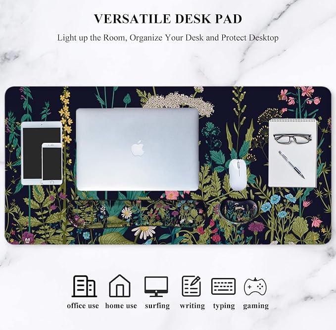 - 【Anti Slip & Stitched Edges】The soft and dense non-skid nature rubber base keeps this desk pad cover firmly in place. Just immerse into your work or games without worrying about the annoying mouse pad movement. And the delicate stitched edges can prevent wear, deformation and degumming in prolonged use. Design for security and durability, and enhances the aesthetic and lifespan of the mouse pad.