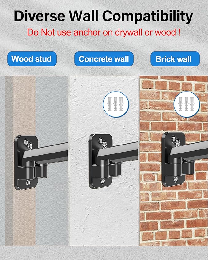 - Universal Monitor Wall Mount - The dual monitor wall mount fits most flat or curved computer screens up to 32", each arm holds 4.4-19.8lbs, support pc display with VESA pattern 75x75mm and 100x100mm. Designed for wood studs, brick, and concrete walls. NOTE: Not for dry wall alone application.