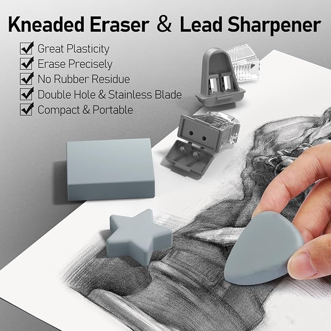 - [Professional Set] You will get 1PC 2.0mm drafting mechanical pencil, 1 tube each of 2H, HB, 2B, 4B, Color lead (60 pcs in total), 1pc kneaded eraser ,1pc 4B eraser, a mini double-hole pencil sharpener, a storage case