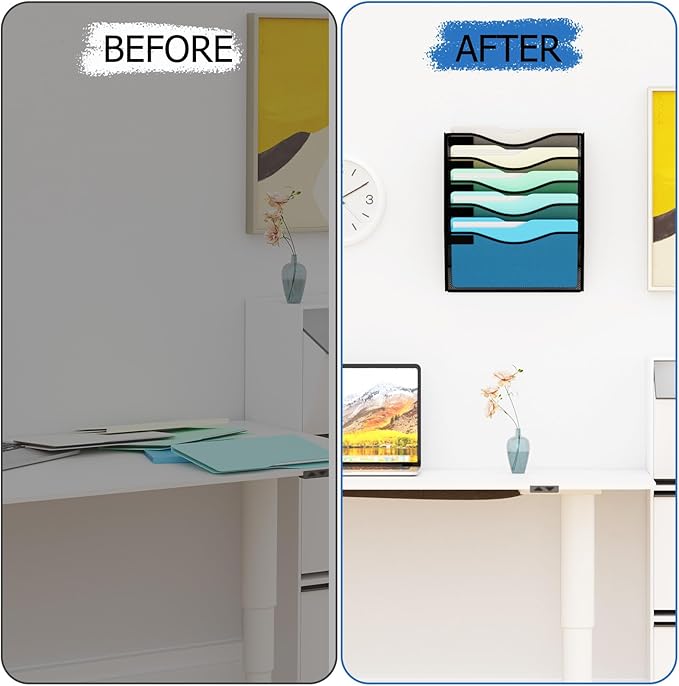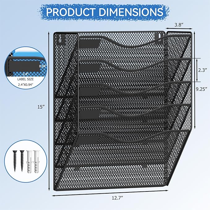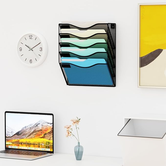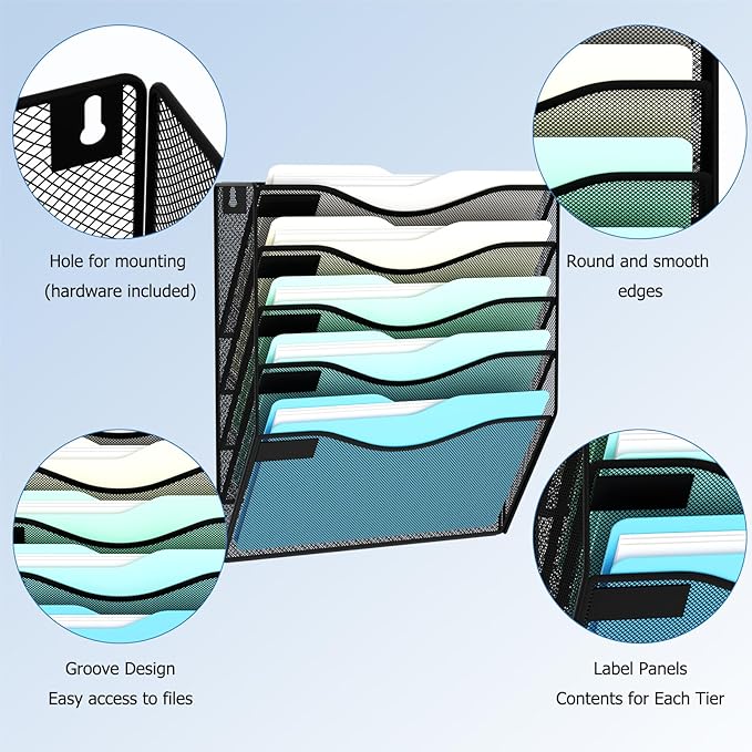 - PREMIUM FILING ORGANIZER: Crafted from high-quality metal, this wall file folder holder features a sleek, modern mesh design with a durable powder-coated finish. It’s resistant to rust and oxidation, ensuring long-lasting performance.