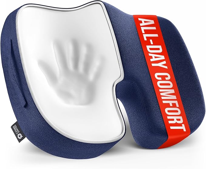 5 STARS UNITED Seat Cushion for Tailbone Pain Relief ā Memory Foam Lifting Pillow for Coccyx, Hip, Hemorrhoid, Sciatica & Post-Surgery Recovery ā Wheelchair, Car, Desk, Gaming & Office Chairs, D Blue