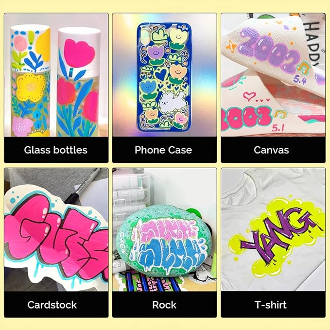 - [Work well on Multi Surfaces] Arrtx drawing markers set provides water-based smooth ink and excellent coverage for a variety of surfaces, including rock painting, metal, paper, wood, plastic, canvas, fabrics, ceramics, and more. The creative possibilities are endless!