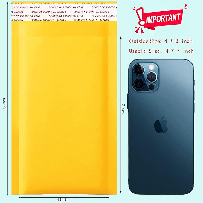 packbabol Kraft Bubble Mailers 4x8 Inch 50 Pcs,Small Self-Sealing Mail Shipping Bags,Yellow Padded Envelopes #000