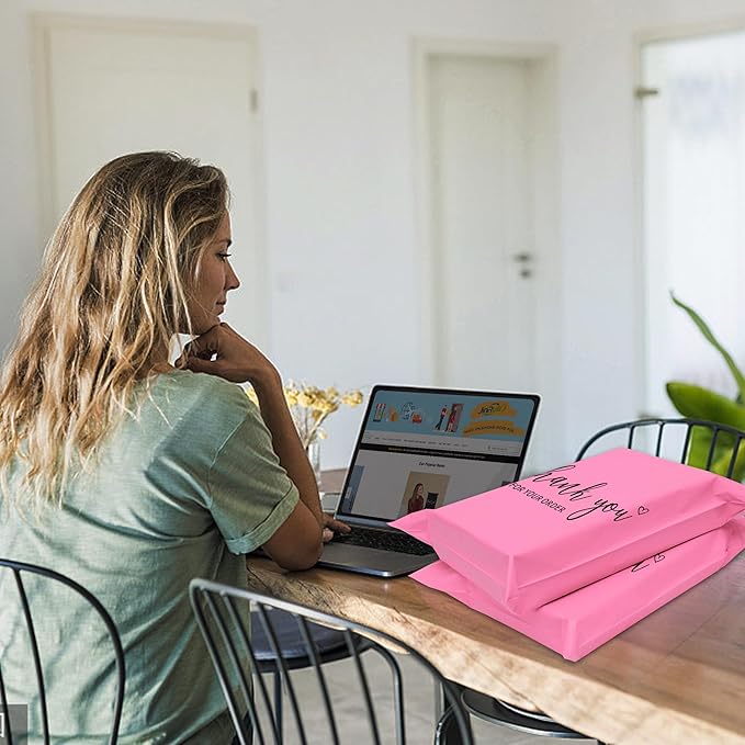 JinRuiKJ Thank You Poly Mailer 10x13 Inch 25 PCS, Shipping Bags for Clothing, Packaging Bags for Small Business, Strong Adhensive, Waterproof and Tear-Resistant Mailing Envelopes, Pink