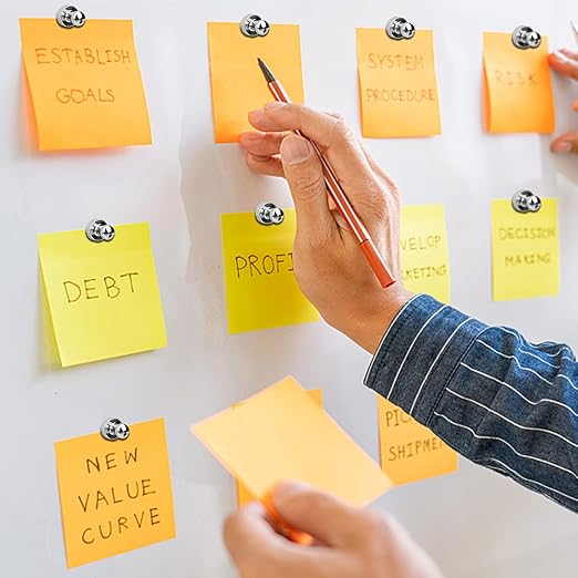 - PREMIUM MAGNETISM - The whiteboard magnets magnetism is much stronger than the usual refrigerator magnet, after testing strong fridge magnets can hold up to 30 pcs of sticky note or 17 pcs of A4 paper with just one small push pin magnet at one time,MIKEDE small but strong refrigerator magnets ensures that your work, your recipes, and what you want to show will not slide easily