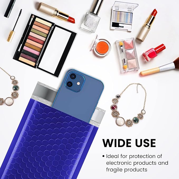 - Perfect Size #000 Blue Bubble Mailers: The poly bubble mailers padded outer size is 4x8 inch, while the inner size is 4x7 inch. It is very suitable to transport for jewelry, makeup, cards, phone case, lips, photos,handcraft and more. Great for small business packing.