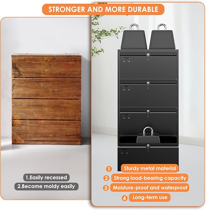 - Lockable Letter & Legal Size Drawers - Lateral file cabinet with 4 letter/legal size drawers, each drawer with one hang file bar to meet your different uses. This file cabinet features 4 drawers with locks for maximum protection. Each lock has two keys, in case you lose one of them.