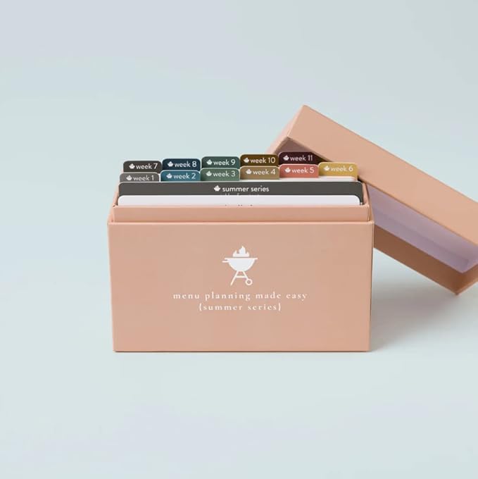 Meal Planner with 72 Recipe Cards (Summer Menu) - Weekly Menu Planner | Sturdy Recipe Box | 12 Reusable Grocery Shopping Lists | 5 Blank Recipe Cards | Recipe Card Protector | Recipe Ideas