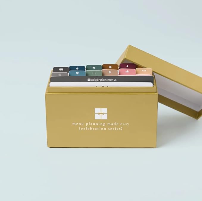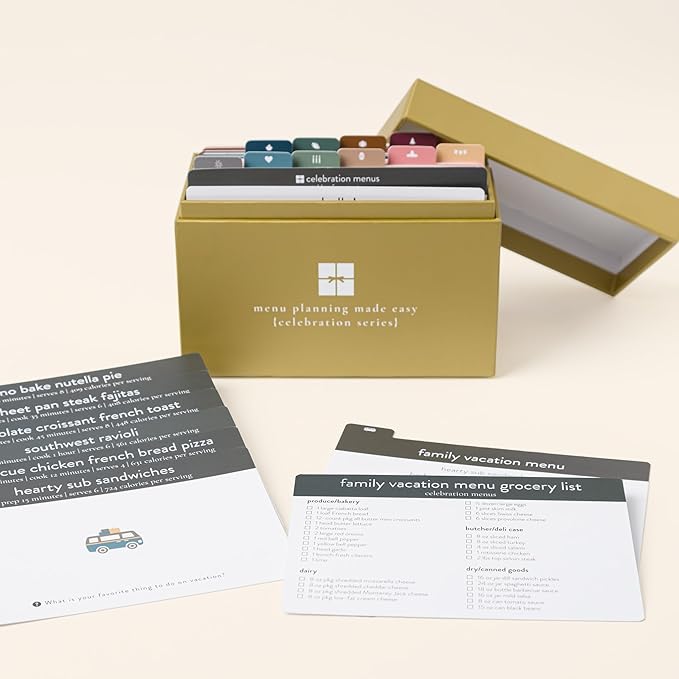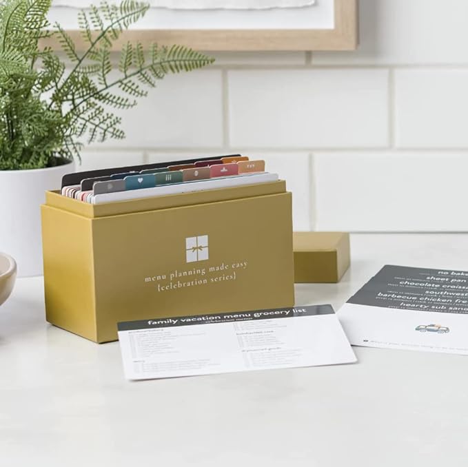 Meal Planner with 72 Recipe Cards (Celebration Menu) - Weekly Menu Planner | Sturdy Recipe Box | 12 Reusable Grocery Shopping Lists | 5 Blank Recipe Cards | Recipe Card Protector | Recipe Ideas