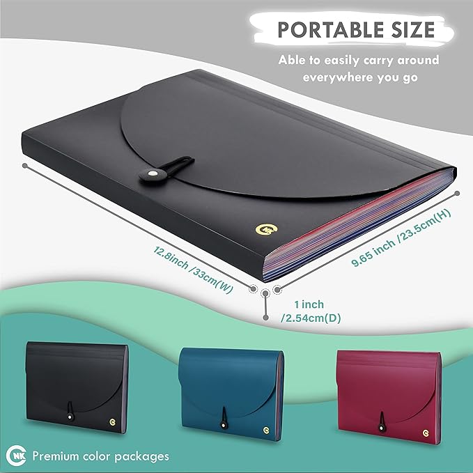 - [Sleek and Stylish Design] Our Sleek and Stylish CNK Accordian File Organizer come in 3-Packs of 13 Pocket expandable file folder with unique hand picked colors that is elegant and stylish.