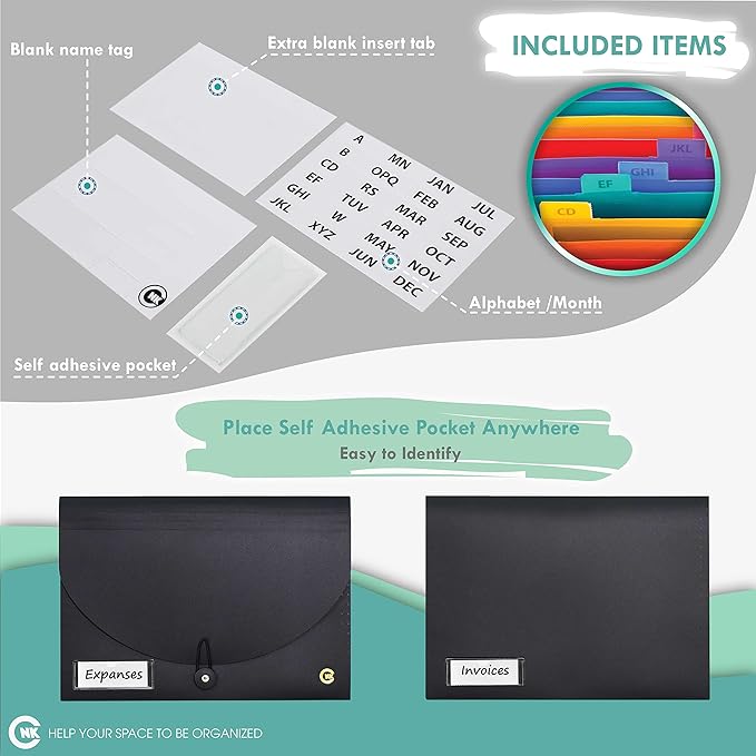 CNK File Folders Organizer with 13 Pockets Accordion Expanding Folder For Documents Receipt Document Paper Pocket Filing Products Accordian Important expandable holder files alphabetical Labels Letter