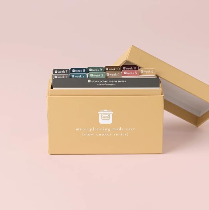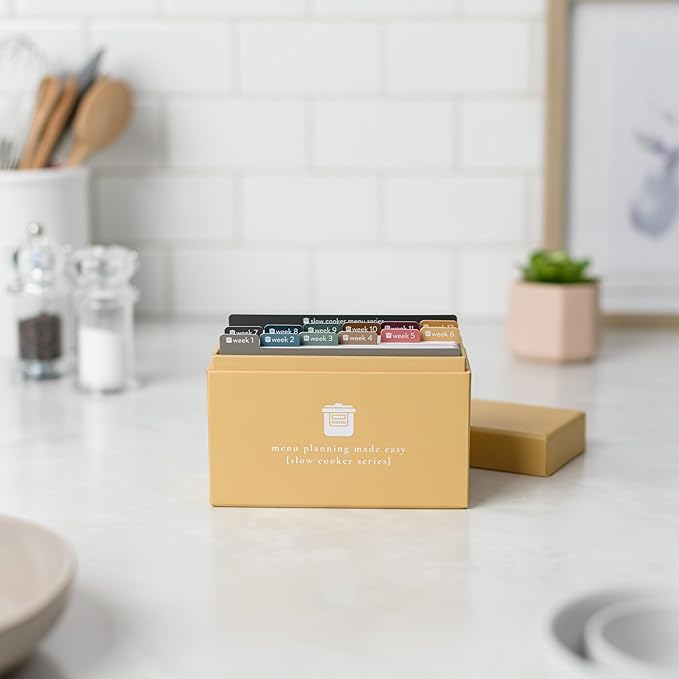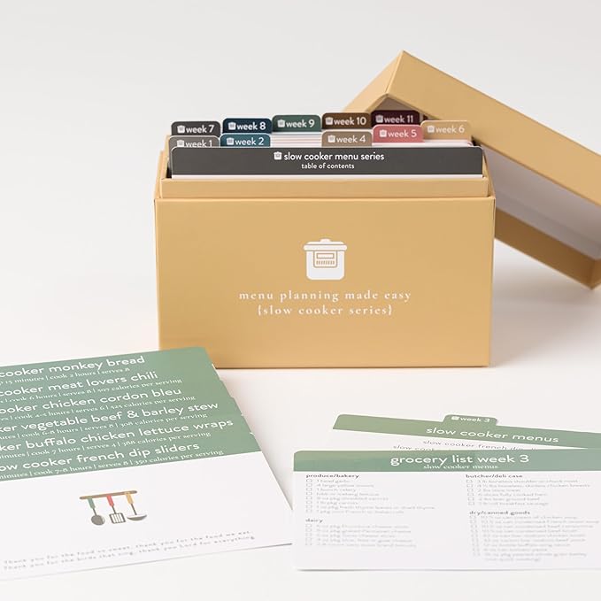 Meal Planner with 72 Recipe Cards (Slow Cooker) - Weekly Menu Planner | Sturdy Recipe Box | 12 Reusable Grocery Shopping Lists | 5 Blank Recipe Cards | Recipe Card Protector | Recipe Ideas