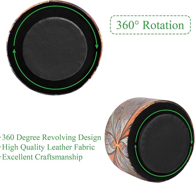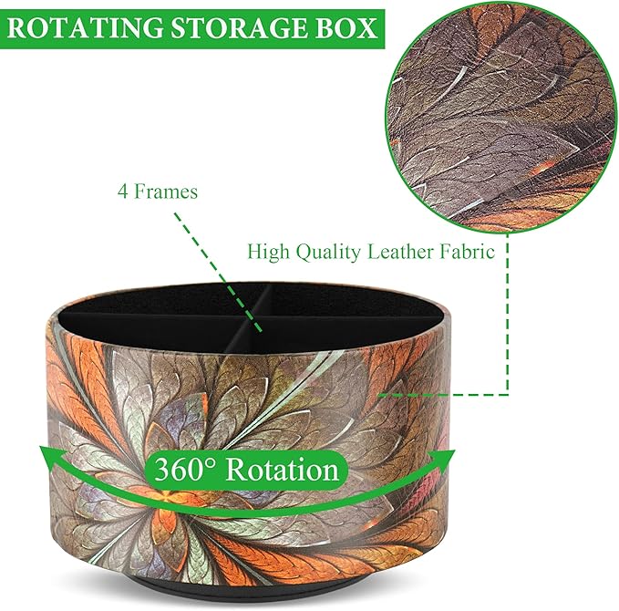 lizimandu Round Leather Art Supply Organizer,Remote Control Holder,360 Degree Rotating,Multi-Functional Pencil Holder,4 Compartments Desktop Stationary Organizer(1-Orange Flower)