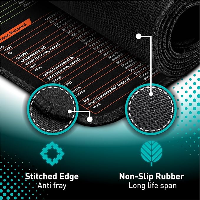 Linux Commands Line Mouse pad - Extended Large Cheat Sheet Mousepad. Shortcuts to Kali/Red Hat/Ubuntu/OpenSUSE/Arch/Debian/Unix Programmer. XXL Non-Slip Gaming Desk mat