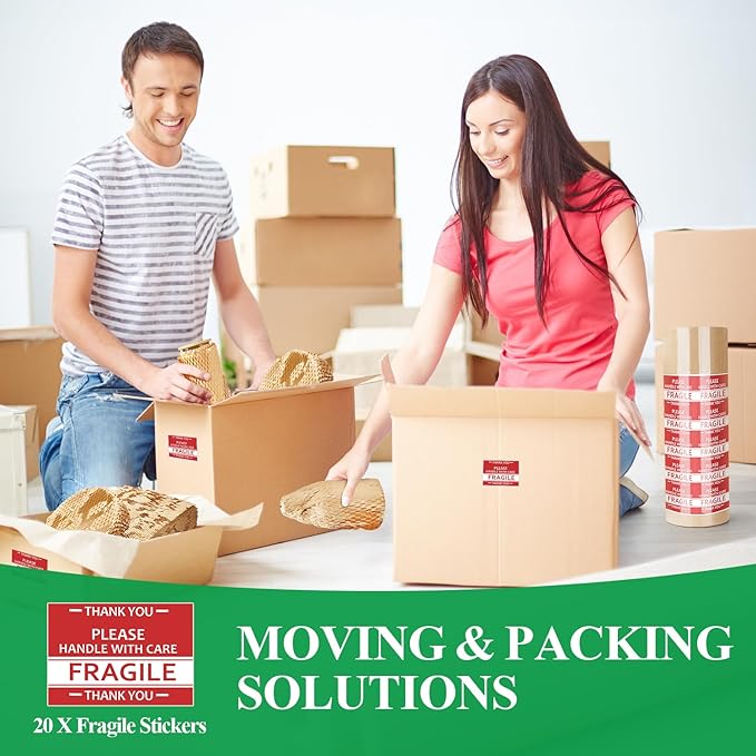 Honeycomb Packing Paper Wrap 15"x400' Sustainable Alternative to Bubble Cushioning Wrap Biodegradable & Fully Recylable for Moving/Shipping/Packing Roll with 20 Fragile Stickers