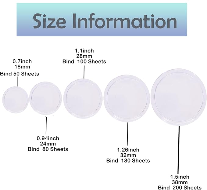 - 5 Sizes Options about Discbound Planner Discs Replacement:MINI 18mm(0.7 inch)for around 50sheets , S 24mm(1 inch)for around 80 Sheets,M 28mm(1.1 inch)for around 100Sheets ,L 32mm(1.26 inch)for around 150Sheets ,XL 38mm(1.5 inch)for around 200Sheets ,meet your various usage needs.