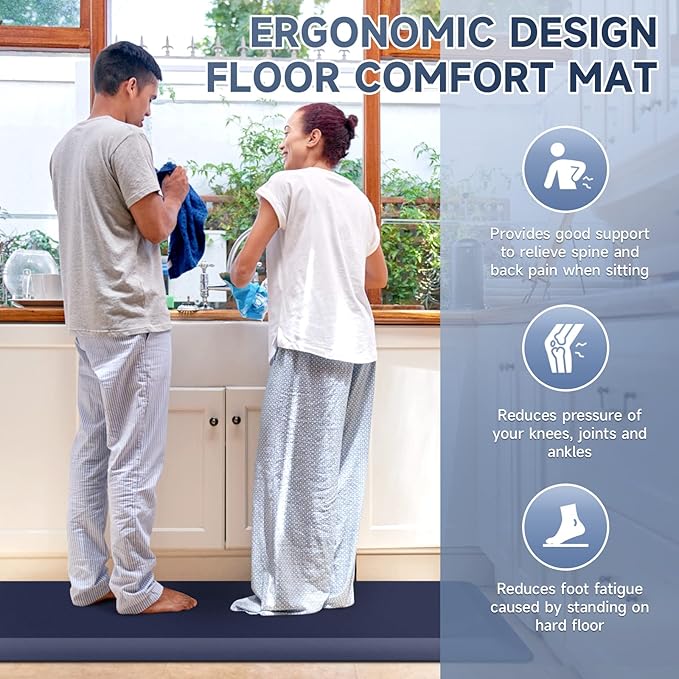 StepRite 4/5 Inch Thick Kitchen Mat Anti Fatigue Mat Kitchen Rugs Kitchen Decor Non-Slip, Stain Resistant, Waterproof Kitchen Mats Desk Mat for Kitchen, Office, Workshop, Blue, 17'' x 47''