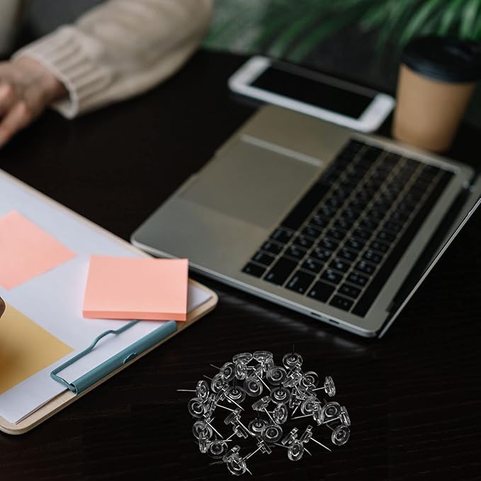 - [Flat Push Pins Design]These Clear Push Pins for Cork Board Have a Flat Head Design,and The Thumb Tacks Needle is 15 Degree Angle,You Just Need to Gently Press,Easy to Inset.