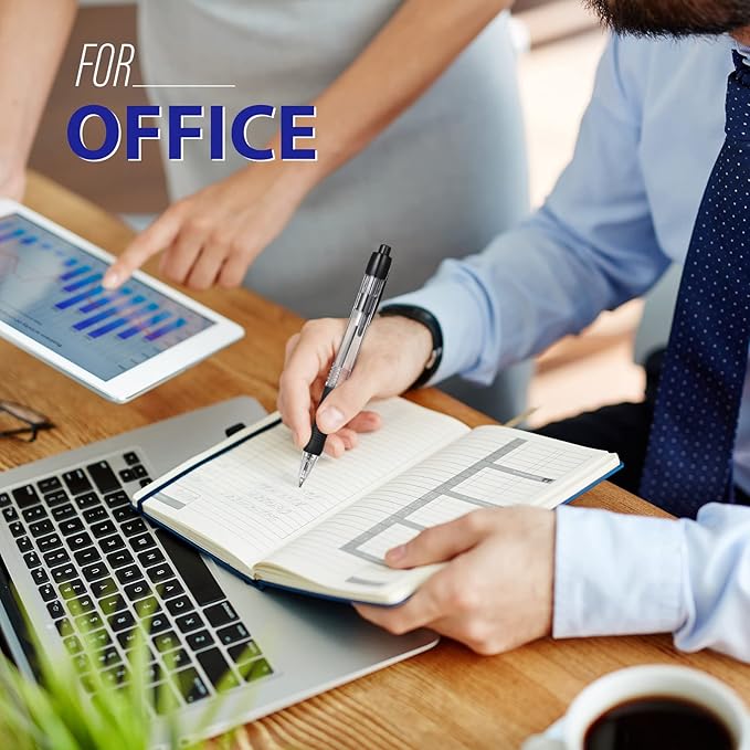 - Retractable Pens with Clip: this soft grip ballpoint pens have a retractable design to avoid the ink from drying out, just press down to use it, never worry about losing the cap; And the retractable pens comes with a clip that allows you to easily secure it in your notebook, binder or pocket for easy portability