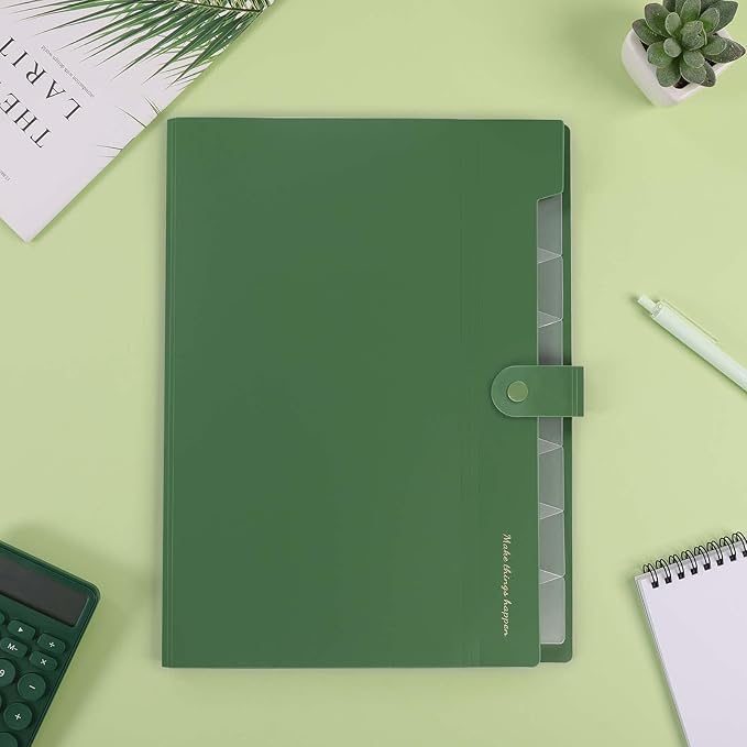SKYDUE Expanding File Folders with 8 Pockets, Accordion File Organizer with Labels, Portable Paper Bill Receipt Organizer, Letter Size, Home School Office Supplies, Olive Green