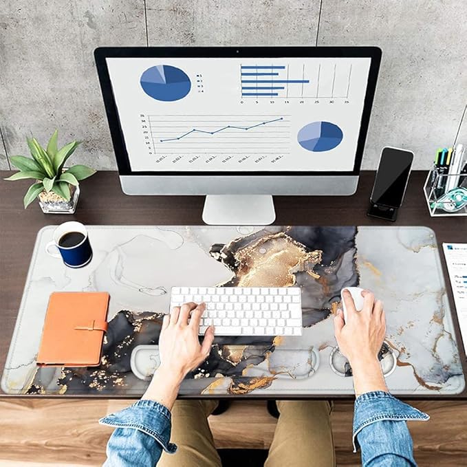 LATEEFAH Large Mouse Pad and Keyboard Wrist Rest, Desk Pad for Keyboard and Mouse, Extended Gaming Mouse Pad with Wrist Support, Waterproof Non-Slip Desk Mouse Mat for Office, Home