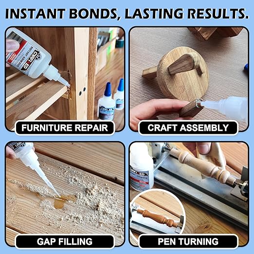 - THE ESSENTIAL GLUE FOR WOODWORKERS: CYAFIXED Medium Viscosity Super CA Glue, cures in 5-60 seconds (depending on wood type), has a viscosity of 120 CPS, is highly adaptable and has amazing adhesion to most woods. Commonly used for wood panel splicing, wood product bonding and repair.
