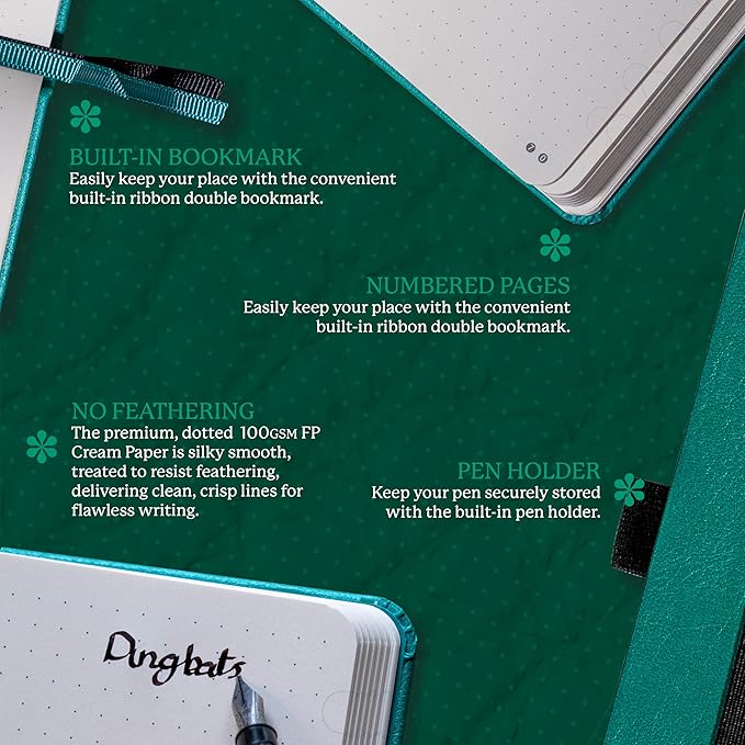 - A5 NOTEBOOK WITH LOTS O' FEATURES: Stay organized in style with our premium notebook featuring a durable PU vegan leather cover, smooth micro-perforated pages, an elastic closure, and a convenient pen holder - the perfect companion for your daily notes, to-do lists, and creative ideas.