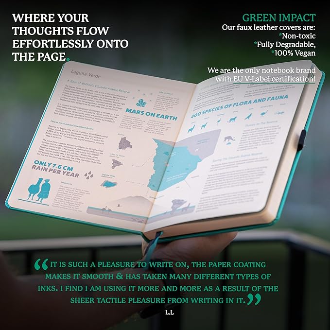 - THE ONLY VEGAN CERTIFIED NOTEBOOK: Stay eco-conscious with our 100% vegan certified notebook, crafted from recyclable materials and featuring purely FSC certified paper - perfect for anyone looking to make a positive impact on the environment while staying organized