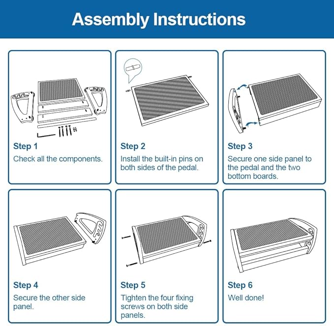 - Quick and Effortless Assembly: Assemble your under-desk foot stool swiftly in just 3-5 minutes. The package includes all necessary components and a straightforward guide, ensuring a hassle-free setup. Start enjoying the comfort and durability of your new footrest right away, without the need for extensive assembly or tools.