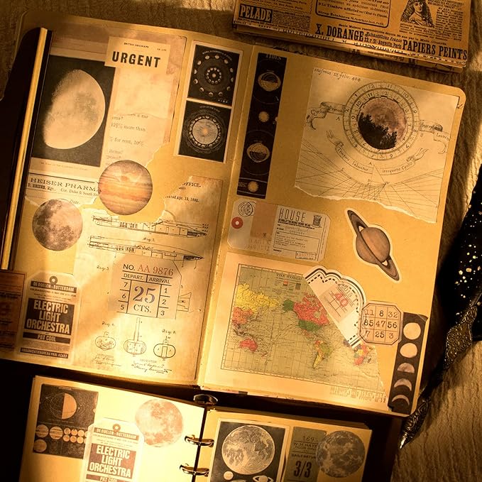 - 【Celestial Themes】200 Pieces celestial and astrology-themed various papers and stickers, including various planets and space, maps of old world, receipts, galaxy, tickets and more. Great for junk journaling, scrapbooking, collages or astronomy-themed art projects!