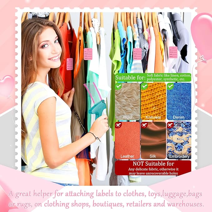 - Multiple Applications: the clothes tag gun with tags kit works well in attaching labels to your clothes, toys, luggage, shoes, bags, hats and other things, which are practical for shops, boutiques, retailers, online sellers, clothing factories, clothing stores, warehouses and more